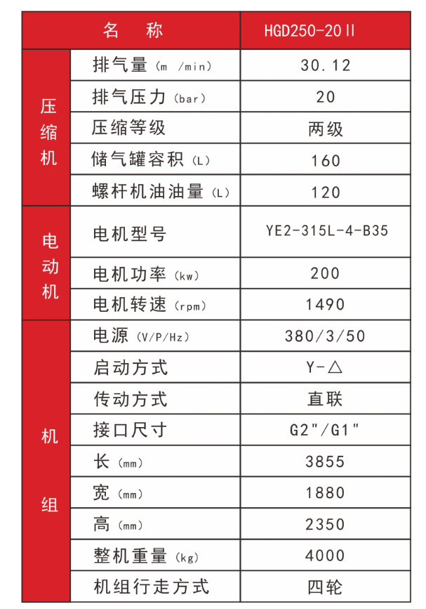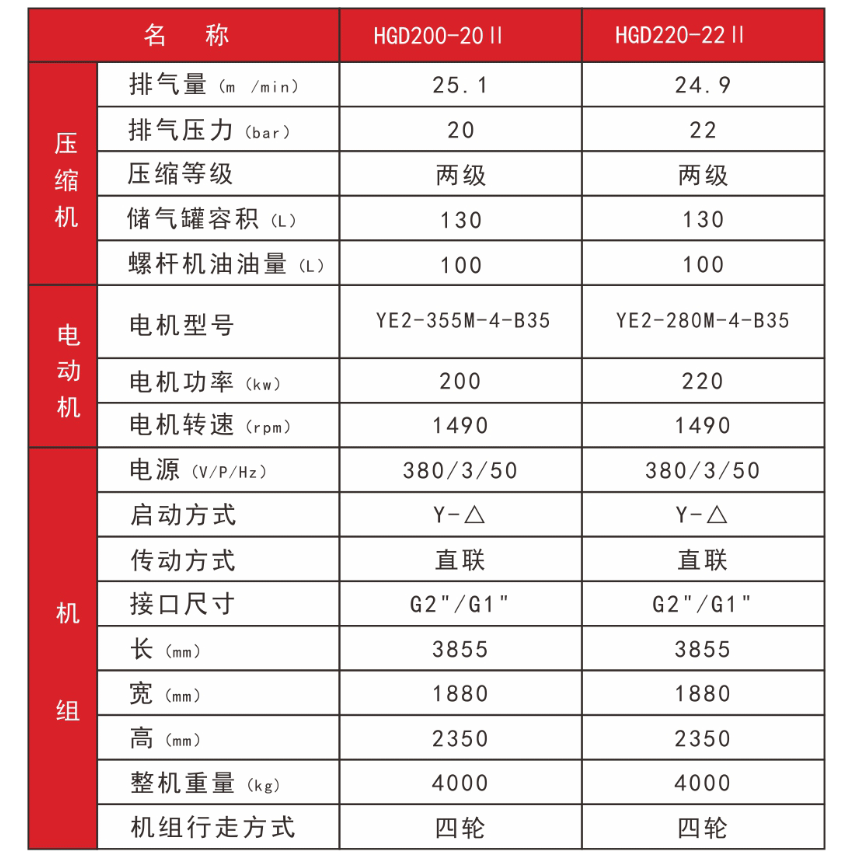 電驅(qū)-HGD兩級(jí)壓縮高壓系列移動(dòng)空壓機(jī) HGD200、HGD250 電移