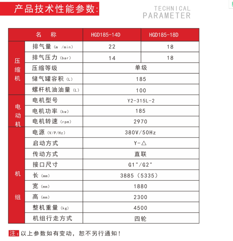 電驅(qū)-HGD兩級(jí)壓縮高壓系列移動(dòng)空壓機(jī) HGD200、HGD250 電移