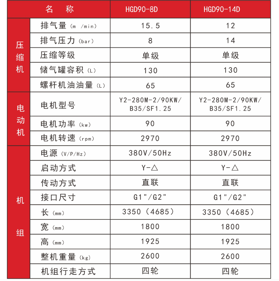 電驅(qū)-HGD中型移動(dòng)空壓機(jī)系列 HGD110、HGD132 電移